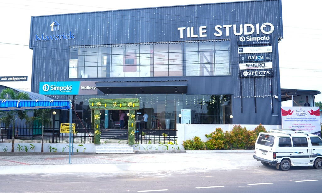 Maverick Tile Studio is one of the largest premium tile showrooms in Erode & Hosur, featuring world-class tiles, slabs, designer wall concepts, outdoor solutions, and sanitaryware from leading brands like Simpolo, RAK, Kajaria, Italica ,Simero, Neotra, Specta, Grohe, American Standard, Hansgrohe & more.